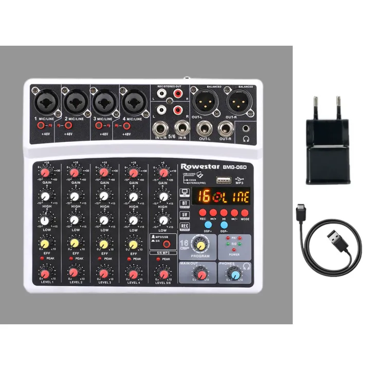 BMG-06D%206%20Channels%20Sound%20Card%20Mixer%20with%2016%20DSP%20Bluetooth%20/%20USB%20Interface%20/%20Record%20/%20MP3%20/%2048V%20Phantom%20Power%20Audio%20Mixer%20-%20Image%201