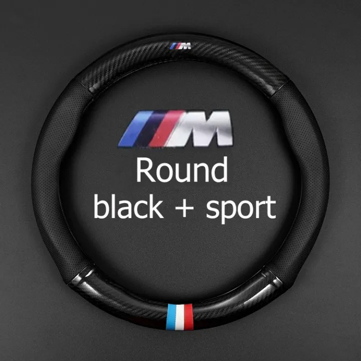 bmw M logo carbon fiber leather steering wheel cover Carbon fiber leather steering wheel cover E46 E90 E60 E39 F30 E36 F10 F20 E87 E92 E30 E34(model:Round black+sport)