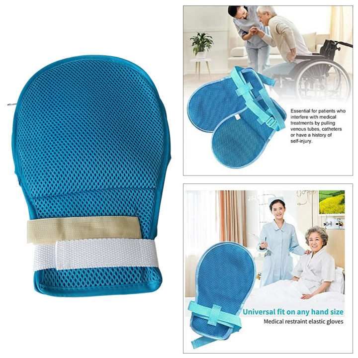 BolehDeals Hand Control Mitts,Dementia Safety Restraint Gloves Hand Protectors Personal Safety Devices Finger Control Mitt- Blue
