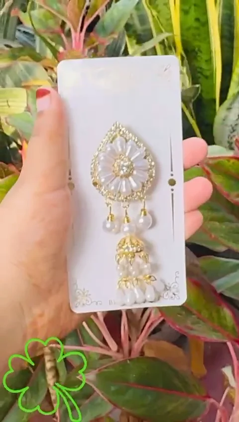 BOOM Gold color beautiful pearl saree brooch with one jimikky and pearl tassel for women and girl