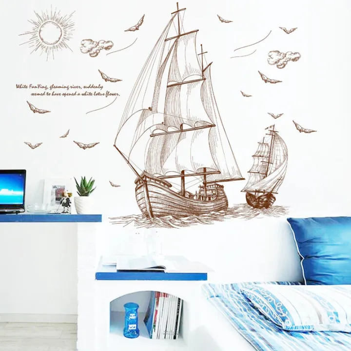 Brown Ships sailing in deep sea classic wall decoration Sticker room wallpaper bedroom nursery window decor wall stickers wedding decoration birthday decoration kids room decoration Wall Stickers