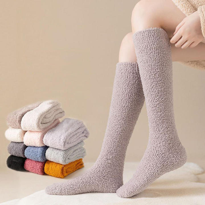 Calf-Length Socks Coral Fleece Socks Warm Socks Solid Color Soft Socks Long Socks Socks Winter Warm Socks for Home Socks Sleepwear Socks Lounge Socks Indoor Socks Cold Weather Socks