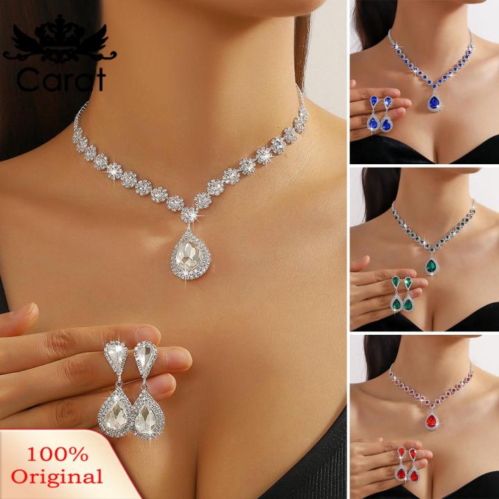 Carat Faux Crystal Jewelry Set Sparkling Waterdrop Crystal Choker Necklace Earrings Set for Women 2pcs/set Wedding Jewelry Women Wedding Jewelry Set