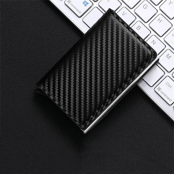 Card Box Rfid Men'S Anti-Theft Card Holder Automatic Degaussing Pop-Up Pu Leather Large Capacity Aluminum Alloy Card Holder Mini Wallet