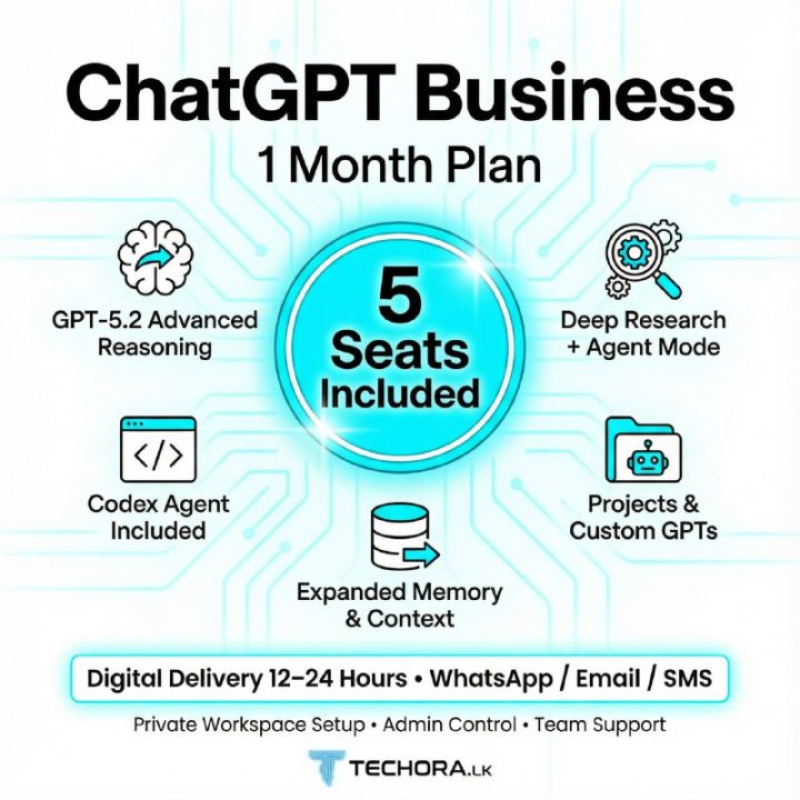 ChatGPT Business (Team) – 1 Month | 5 Seats Included | Workspace Setup | Techora.lk