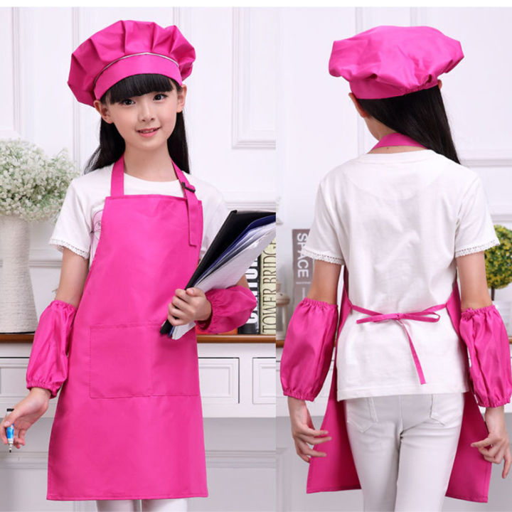 Children art Kitchen Aprons Waists 9 Colors Kids Aprons with Sleeve Chef Hats for Painting Cooking Baking 4 pcs/set