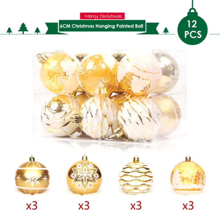 Christmas Hanging Ball Painted Ball 6cm 12PCS for Xmas Ornaments Christmas Tree Decoration Deco Home Party Daily Use Present Gift Festival Holiday Housewarming Portable