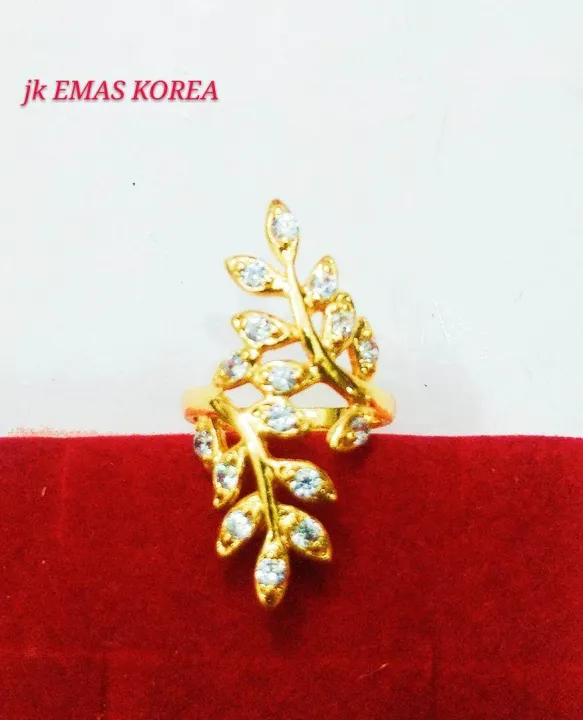 Cincin DAUN KETUP PERMATA EMAS KOREA RING ZIRCON Golden Plated FREE COP