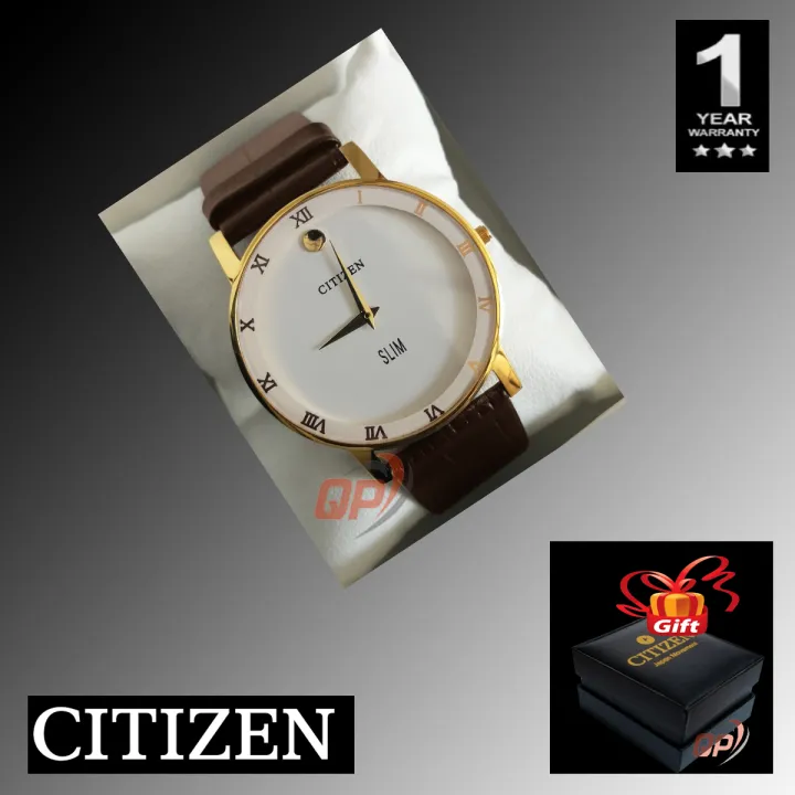 CITIZEN SLIM New Men’s Luxury Leather Band 42mm Stainless Steel Case Quartz Watch(One Year Warranty)