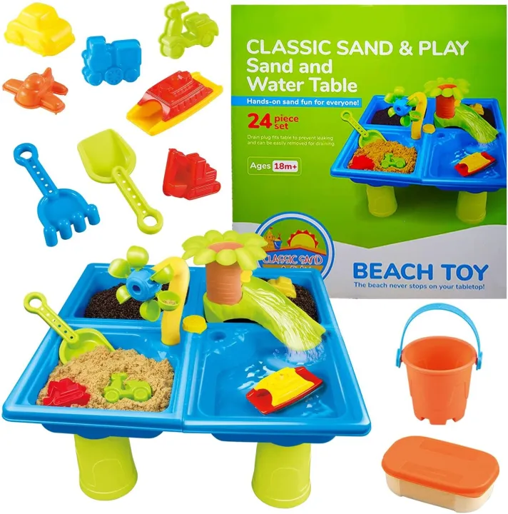 Classic%20Sand%20&%20Play%20Kids%20Sand%20and%20Water%20Table,%2024-Piece%20Set,%20Fun%20Activity%20Center%20for%20Toddlers%20with%20Plastic%20Molds,%20Scoop,%20Waterfall%20and%20Leak-Free%20Tray,%20Practical%20Early%20Learning%20Beach%20Toy%20for%20Kids%20-%20Image%201