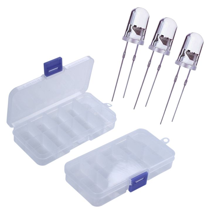 (COKP)%202Pcs%2010-Slot%20Portable%20Plastic%20Resistors%20Electronic%20Component%20Case%20Box%20&%20100Pcs%205mm%20Round%20Uv%20Led%20Diode%20Super%20Bright%20Water%20Clear%20Led%20Light%20Lamp%20Color%20-%20Image%201