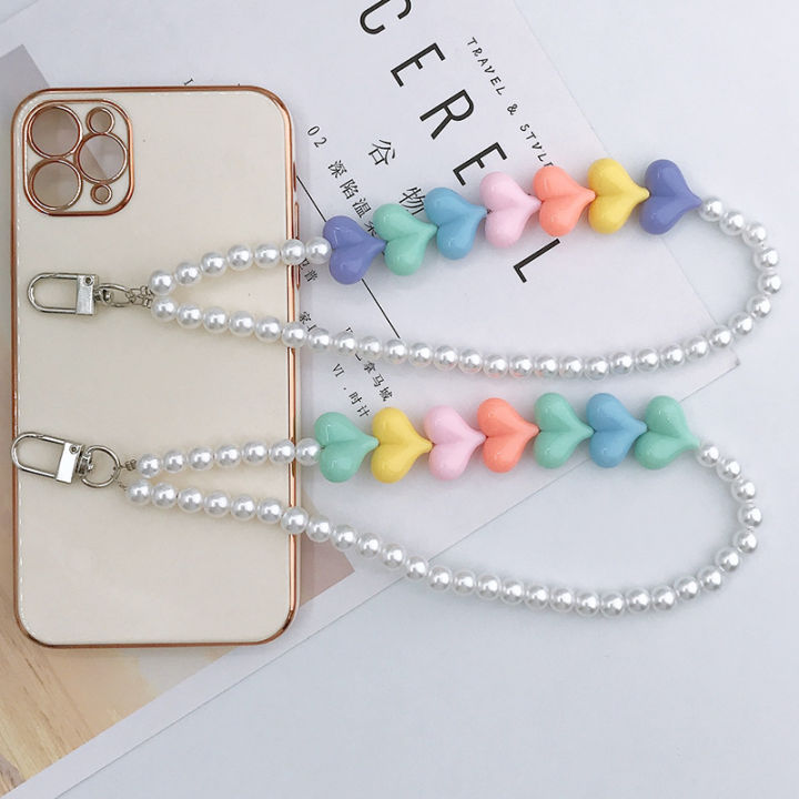Colorful Resin Heart Flower Pearl Acrylic Beaded Phone Chain Strap For Women Charm Phone Lanyard Accessories