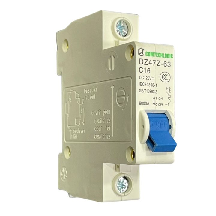Comtechlogic 1P DC MCB 16A 125V Mini Circuit Breaker for Overload and Short Circuit Protection UK Brand