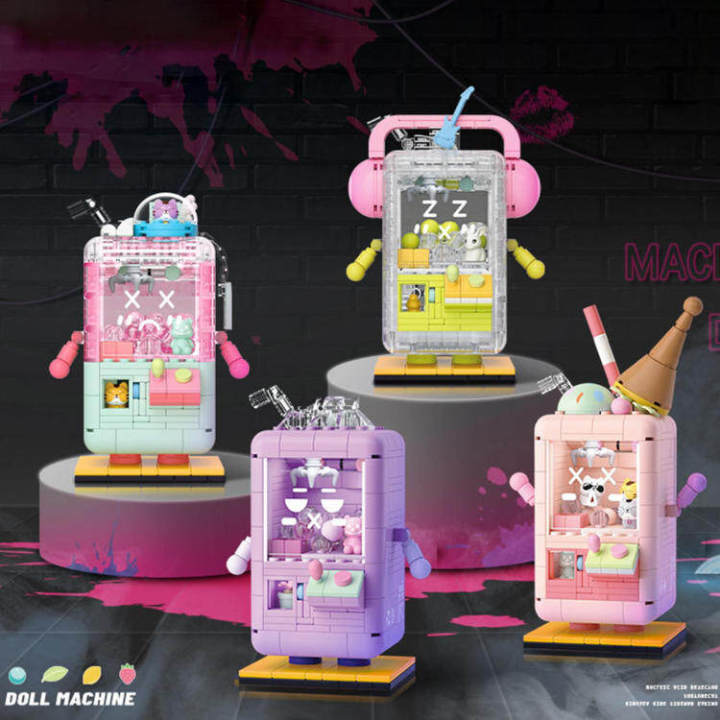 Creative Mini Doll Machine Model Building Blocks Claw Catch Mini Blocks Toys DIY Toy Bricks Interactive Toys For Girls Kids Gift awesome