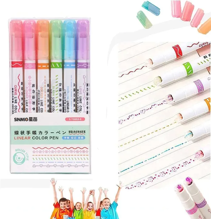 Curve Highlighter Pen Set, Flownwing Curved Highlighter Pen, Tip Pens with 6 Different Curves Shapes Fine Tips, for Writing Journaling Note Taking