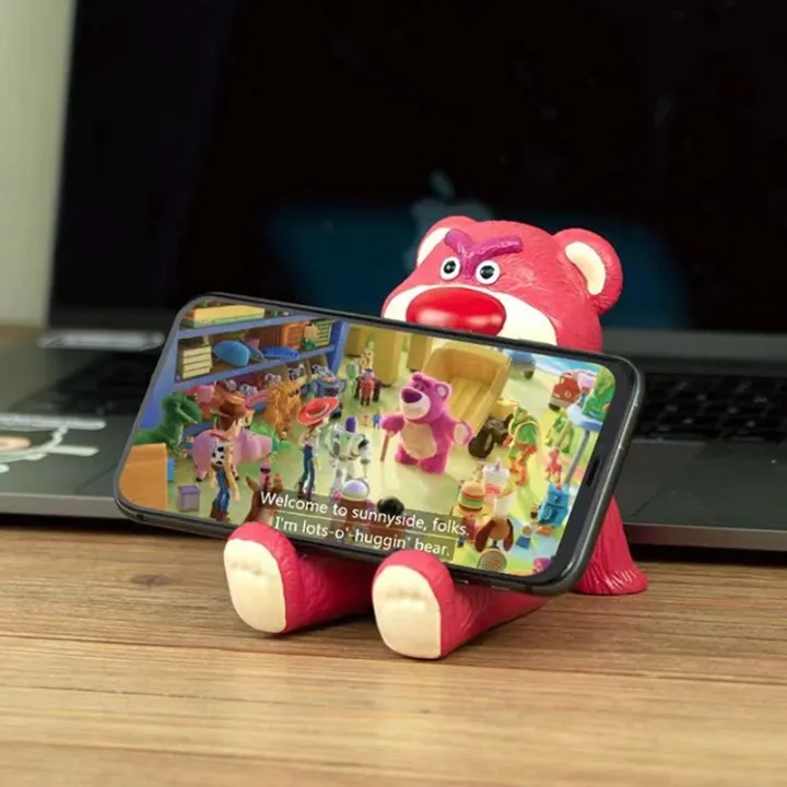 Cute Cartoon Strawberry Bear Figure Phone Stand Office Desktop Decoration Ornaments