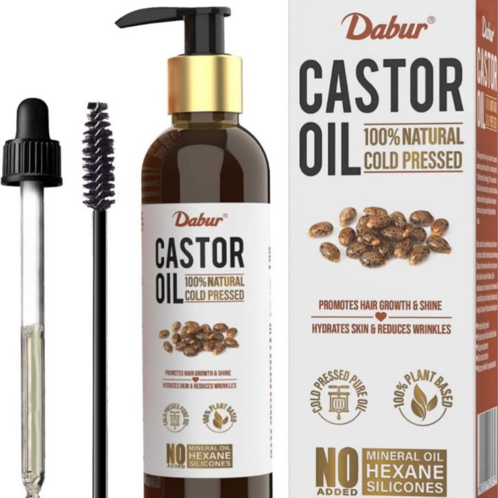 Dabur Castor Oil - 200ml | 100% Natural Cold Pressed Oil | Promotes Hair Growth, Hydrates Skin & Reduces Wrinkles | No Mineral Oil & Silicones