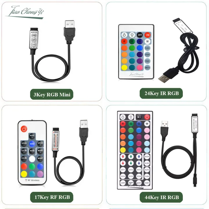 Dc 5v Usb Led Strip Rgb Controller 3key Dimmer / 24key Ir Remoter / 17key Rf Wireless Remoter Control 2835 5050 Rgb Strip