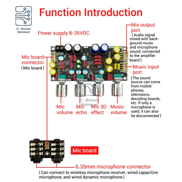 Dc 8-26v Amp Karaoke Reverb Board Microphone Karaoke Singing Front Effector Dsp Mixing Anti Howling Board Moduel For Arduino