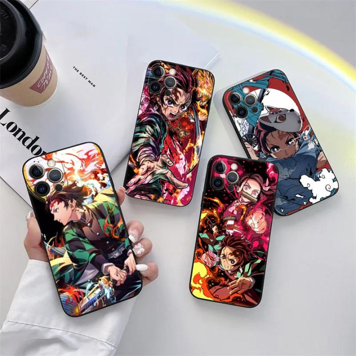 Demon-Slayer Tanjiro Anime Phone Case for iPhone 11 15 Pro Max Case 14 Plus 13 Pro 12 11 X XR 7 8 SE Soft Cover Kimetsu No Yaiba