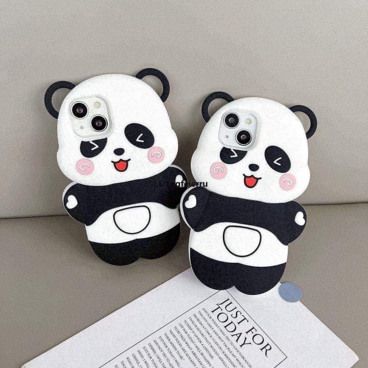 Dengfeierru Stereoscopic Cute Cartoon Panda Bear Phone Case For iPhone Sales promotion 11 12 13 14 15 Pro Max/Pro Silicone Soft Back Cover