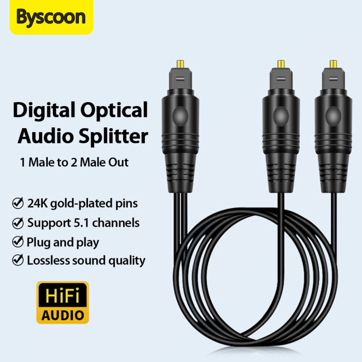 Digital Optical Audio Splitter 1 in 2 Out Toslink Fiber Optic 1 Male to 2 Male Cable for Home Theater Stereo System