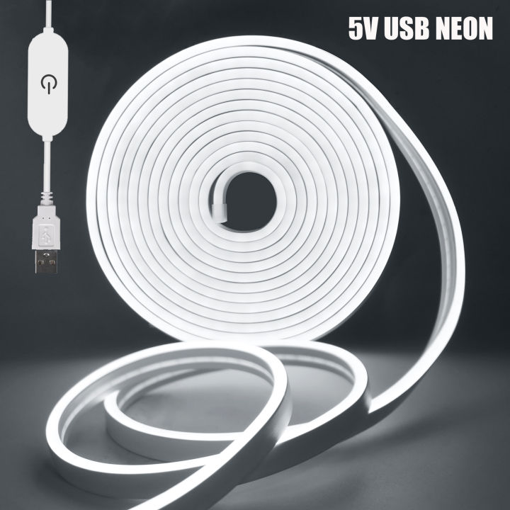 Dimmable LED Neon 5V USB Flexible LED Strip 6x12mm Waterproof Neon Tape Ribbon 2835 120LEDs White Warm Natural