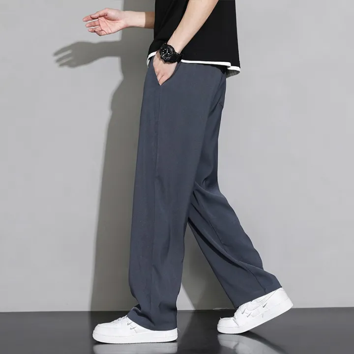 Draping Ice Silk Casual Pants Men's Summer Thin Loose Straight Fashion Men's Clothing Sports Wide Legs Boys Long Pants