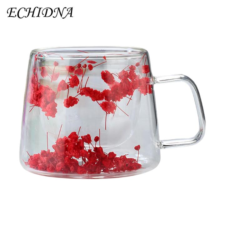 Dried Flowers Coffee Mugs with Handles Handcrafted Floral Glass Tea Cups Elegant Heat Resistant Coffee Mugs with Real Dried Flowers Perfect for Sipping in Style Floral Design Glass Mug