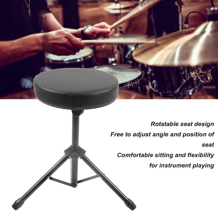 Drum Throne, Rotatable Angle Height Adjustable Three Legged Design Non Slip Bottom Drum Stool Metal Sponge Folding Portable Stable and Drum Chair for Drum Seat, Round Drum Stool, Portable Drum Throne Seat with Drum Key for Electric Drum Set Drummer Adults