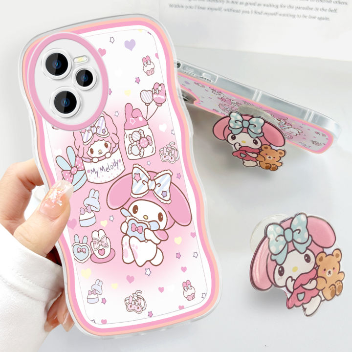 DubaiNi For Realme C35 Realme Narzo 50A Prime (With Free Holder) Fashion Soft Wavy Phone Case My Melody Cinnamoroll Cartoon Shockproof Cellphone Casing Full Cover Camera Protection