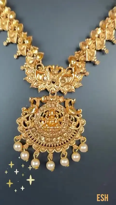 Dull%20gold%20color%20temple%20Design%20long%20necklace%20and%20one%20pair%20earring%20fashion%20jewelry%20necklace%20set%20with%20gold%20and%20of%20white%20pearl%20for%20women%20and%20girl%20-%20Image%209