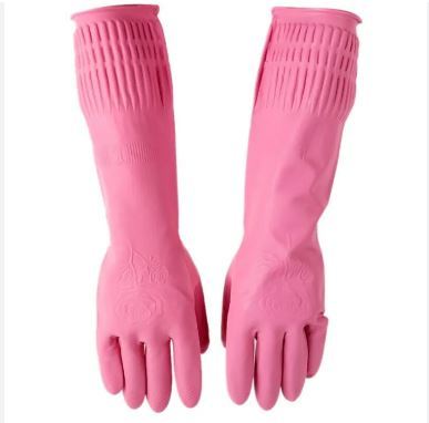 Durable Farmers Rugged Mud Well Paddy Rubber Elbow Gloves - Heavy-Duty, Waterproof - Pink