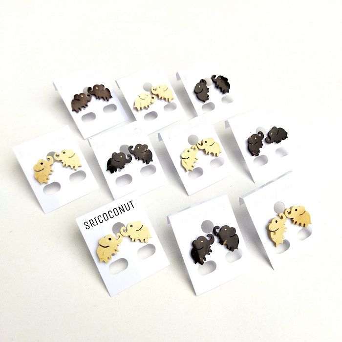 Elephant Shaped Natural Coconut Shell Earrings Unisex Handmade Fashion Jewelry