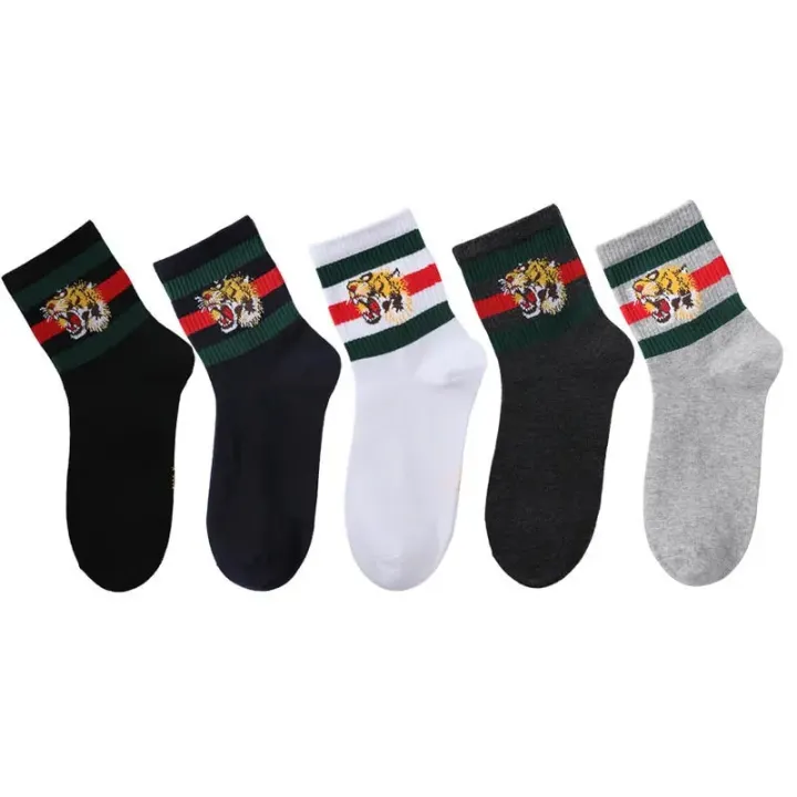 Embroidered tiger socks casual sports men's socks Business classic striped sock