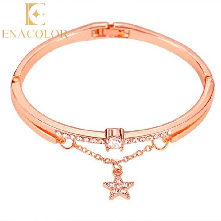 Enacolor Star Crystal Mental Charm Bangle Bracelet for Girls Gift