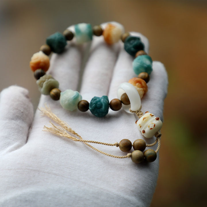【Essential Good Item】13mm Charcoal Flower Lion Wake Bracelet Yin Leather Green Lion Wake Cat Women's Bracelet
