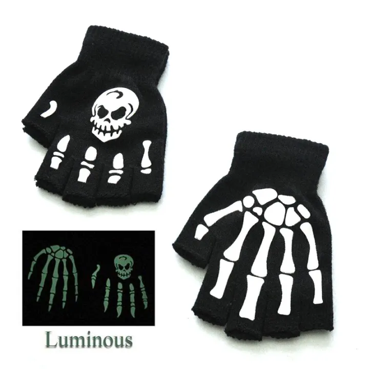 Fashion Halloween Style Gloves Horror Skull Bone Skeleton Half Gloves Novelty ZHANGBEI