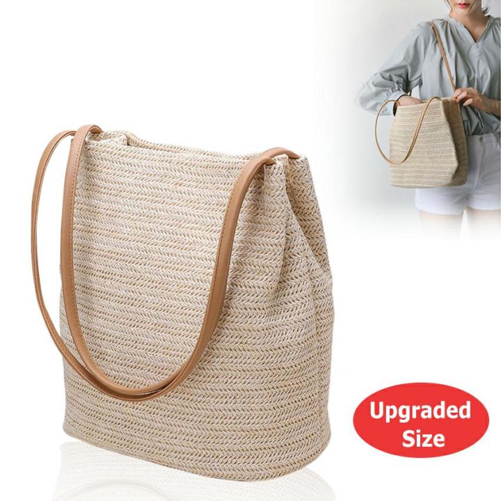 Fashion Women Bucket Bag Straw Bags Woven Shoulder Bag Handbag Crossbody Bag Leisure Style Suitable for Casual Summer