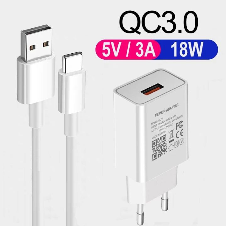 Fast Charging Adaptive 18W Phone Charger For Samsung Galaxy A21S A31 A41 A51 A71 A01 A11 Xiaomi OPPO Type-c USB Charging Cable