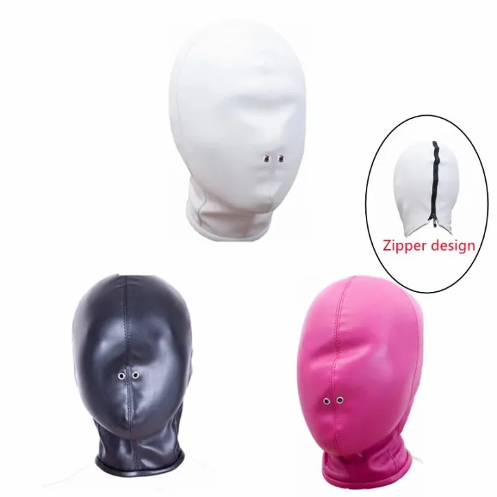 Fetish Full Face Mask Hood PU Leather Cosplay Head Hood for Adult Halloween Party Role Play Costume Mask Head Accessories