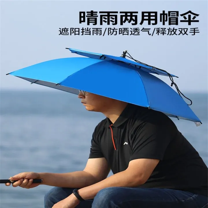 【现货速发】垂钓遮阳伞帽钓鱼帽伞防晒防雨头戴式雨伞双层大号头顶伞户外Fishing parachute cap fishing cap umbrella sunscreen rain wearing umbrella double large top umbrella outdoor