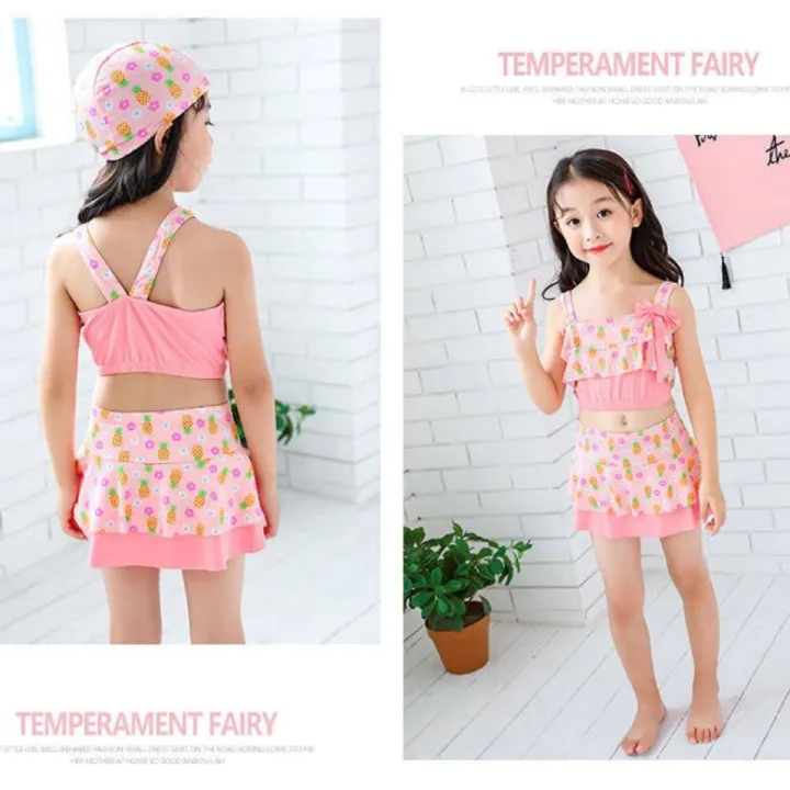 Five-Piece Primary School Student Swimsuit Children Girl Swimwear Girls Middle and Big Children Girls Kindergarten Split Swimsuit