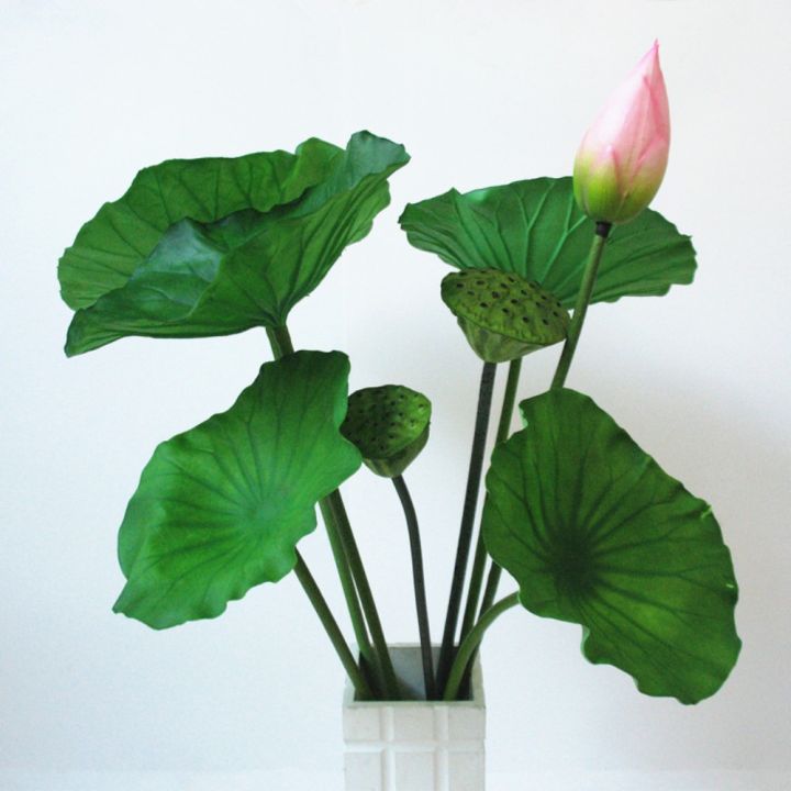 Flower%20Arrangement%20PU%20Artificial%20Lotus%20Romantic%20Lifelike%20Simulation%20Lotus%20Leaf%20Long%20Stem%20Handmade%20Fake%20Lotus%20Branch%20Garden%20-%20Image%201