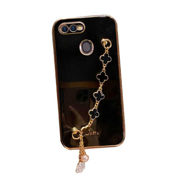 For OPPO A5s Back Cover with Lucky Clover Wristband Chain Fashion Bracelet Shiny Plating Square Edge Bumper Phone Case Soft Silicone Bumper Protective Cover