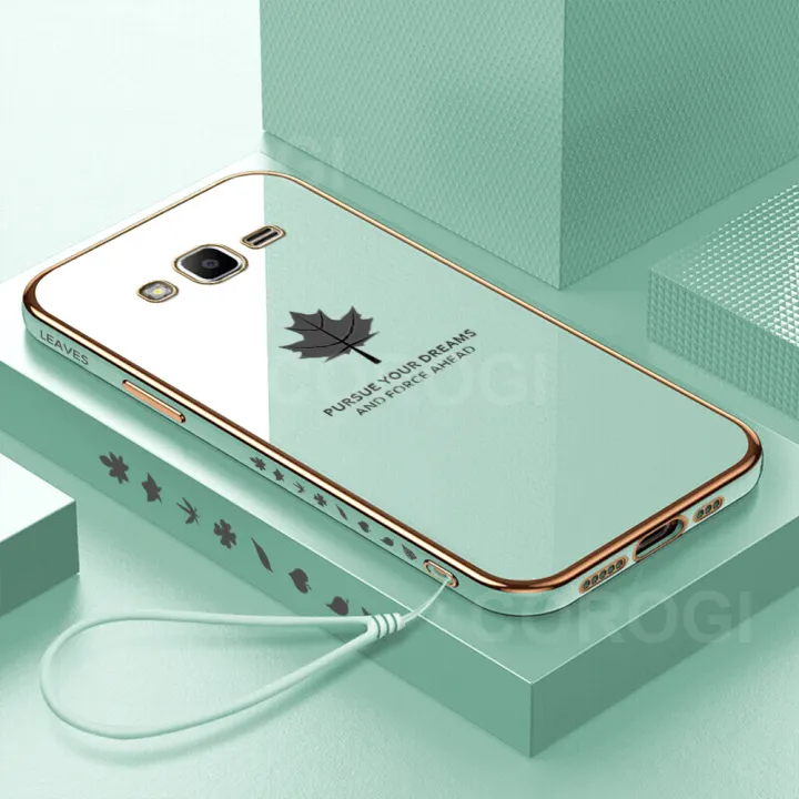 For Samsung Galaxy Grand Prime Plus Back Cover with Hand Strap Luxury Shiny 6D Plating Maple Leaves Pattern Protective Case Square Bumper Soft Silicone Mobile Phone Cases