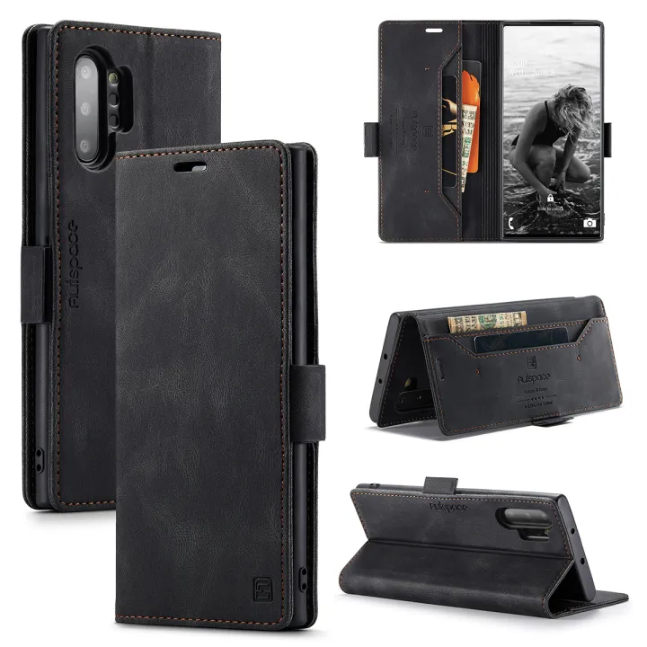 For Samsung Galaxy Note 10 Plus Phone Case Magnetic Leather Wallet Card Slot Retro Flip Cover Casing