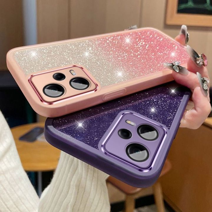 For Xiaomi Redmi Note 12 / Note 12 Pro / Note 12S Back Cover Luxury Gradient Glitter Cute Bling Full Camera Lens Protection Case Soft Silicone Slim Phone Cases for Women Girls