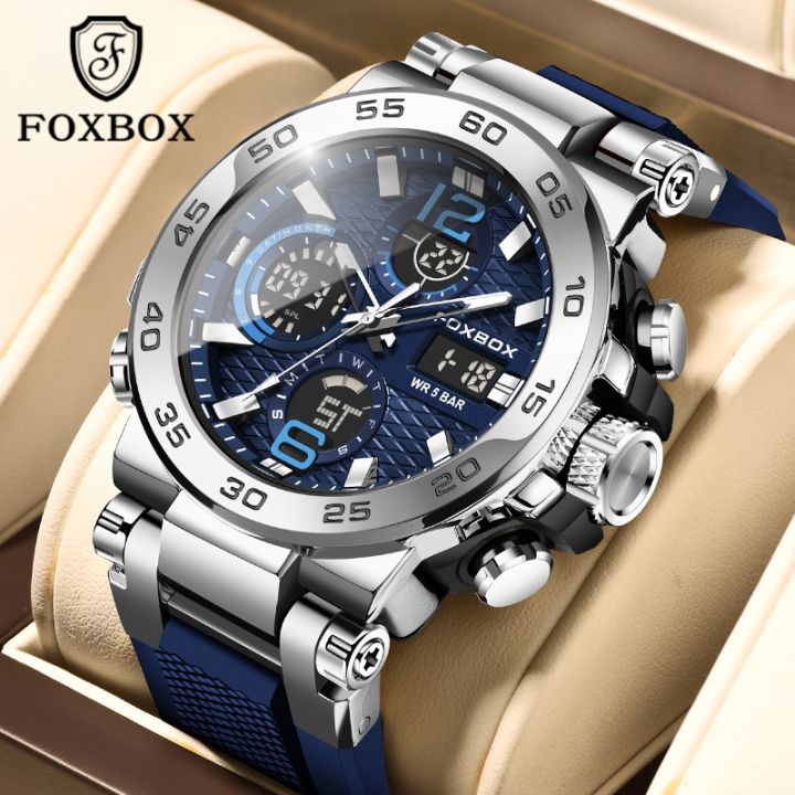 FOXBOX Original Watch For Men LED Waterproof Sport Electronic Luminous Quartz Silicone Wristwatch Date Alarm LIGE Men Watches