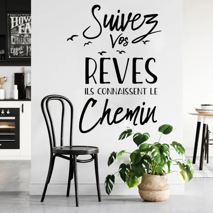 French Follow Your Dreams Quote Wall Sticker Nursery Kids Room Suivez Vos Rêves Inspirational Quote Wall Decal Bedroom Dec